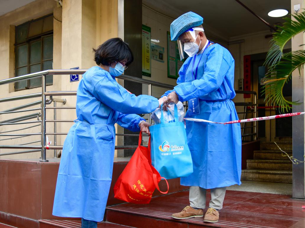 賀華醫生的外科專業,也讓樂山一村社區居民多了一份額外的保障。有志愿者在搬運物資過程中出現擦傷,賀醫生檢查后還同時會把正確防護意識和資料科普給大家。