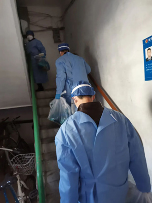 在黨員志愿者的表率作用下,社區居民紛紛報名參加志愿隊伍、擔當責任,近20名“老中青”志愿者火速集結。以“統一分配調度、一事一清、一人一責”為原則,居委干部和志愿者的身影出現在小區各個角落,從疫情防控到“柴米油鹽”,大家群策群力為居民解決需求和問題。