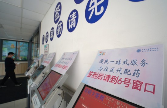 據了解,代配藥志愿者在收齊社區內有用藥需求兒童的醫?ɑ蚓驮\卡后,即可前往萬源路復旦大學附屬兒科醫院,在自助機上完成一次性掛號,于便民內科門診由同一診室、同一名醫生,為不同用藥需求的兒童開具藥物。代配藥志愿者在自助機一次性付費后,在社區代配藥專窗一次性完成所有取藥。據悉,因為疫情特殊時期,醫院藥物清單上的所有藥物均向代配藥服務放開,實現即配即取。