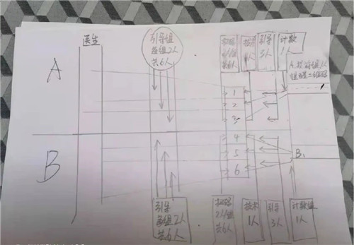 記者看到,該小區的核酸采樣“作戰圖”最初只是一張簡單的手繪圖,分了醫生、引導組、掃碼組、引導人、計數人等,雖然略顯簡陋,但整個流程很清晰。隨著經驗的積累,這張圖不斷升級優化,最后變成了非常形象的電子圖,志愿者根據安排各司其職,核酸采樣組織起來也很順暢。