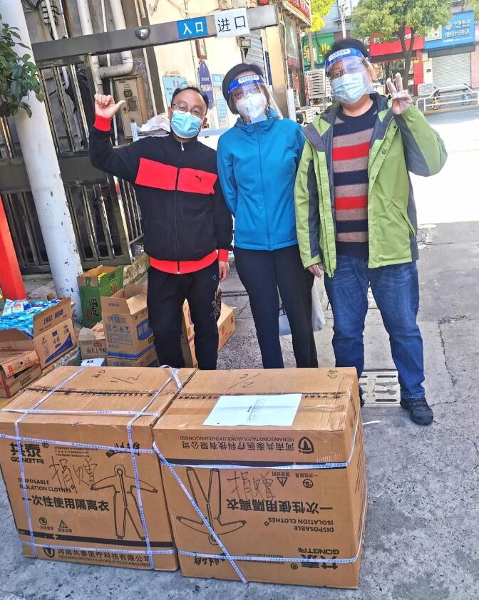 4月16日、17日,兩批包含161件一次性隔離服,162件隔離面罩,67套防護服、67個護目鏡等,總價值8000余元的防護物資送往寶山區淞南四村居委會。這些就是連日來居民自發拼單團購,為沖鋒小區一線的志愿者和居委、物業工作人員送上的愛心和力量。