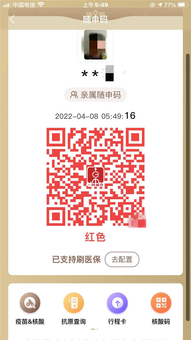 5:49,再看看結果,糟了——健康碼紅了。心突然就亂了,閉著眼睛也睡不著了。煎熬到6:30,我和女兒說,不好了,我紅碼,核酸是待復核。女兒安慰了我一通,說我們不可能感染的,放寬心。我心里好受了些。