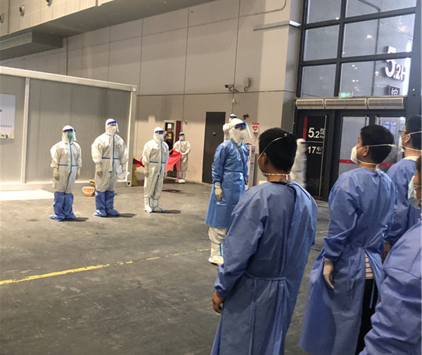 早上7:00,大白通知我們浦東新區的人員去九號門排隊,大家有序排隊、次序上車。由于人員太多,我10:00才上車。11:00到達源深體育中心,等待街鎮運轉。一直等到15:00,曹路的車才來。我們都等得沒脾氣了,又餓又累又熱。