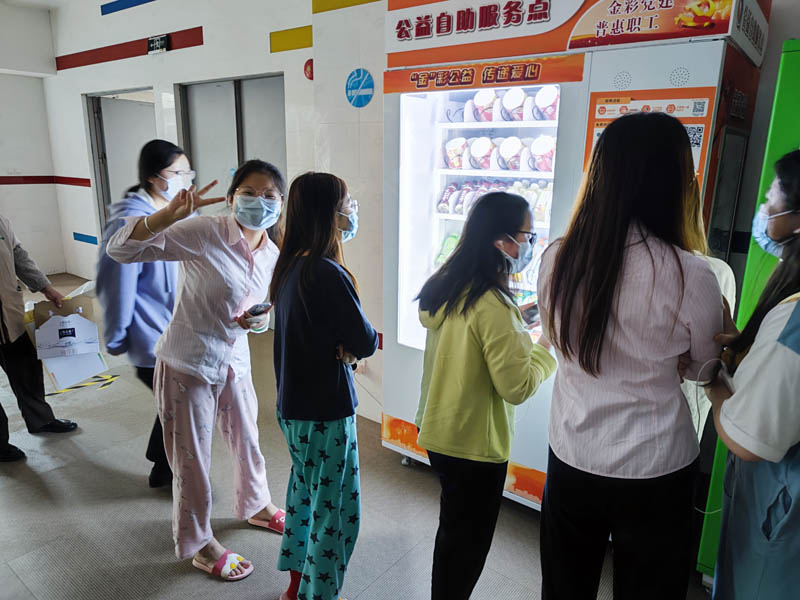 “抗疫先鋒”1+1,實時動態根據需求補充物資。每天安排站點配送清單,每天由1名特定“抗疫先鋒”攜帶物資到公益自助服務站這一特殊的“抗疫先鋒”處補貨。補貨時間不分早晚,最晚的一次“出征”補貨是凌晨1點15分。1名“抗疫先鋒”在前方對接,數名相關人員在幕后隨時做溝通、協助,大家群策群力,讓好事徹底做好。第二天的配送站點清單都是根據前一天公益自助服務站點的缺貨率來定,缺貨率越高,說明職工需求越迫切,就第一時間安排補貨,切實把物資第一時間送到最需要的職工身邊,切實解決職工的燃眉之急。一次,在通聯支付站點,“抗疫先鋒”看到剛補上的物資被“一搶而空”后,突破常規操作模式,對同一站點物資進行二次補齊。通聯支付的員工紛紛點贊“抗疫先鋒”,以職工需求為原點的服務模式,讓職工心里更溫暖。