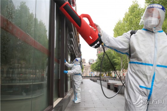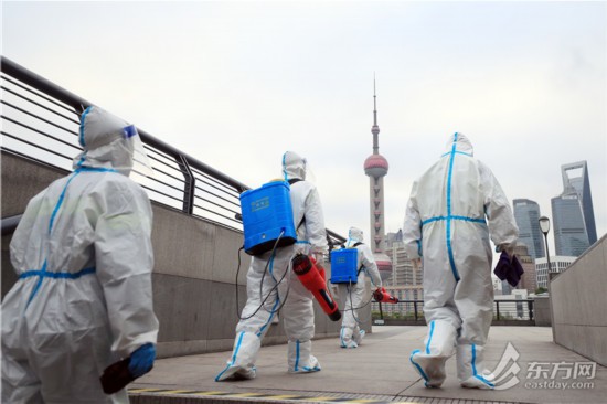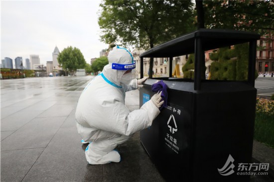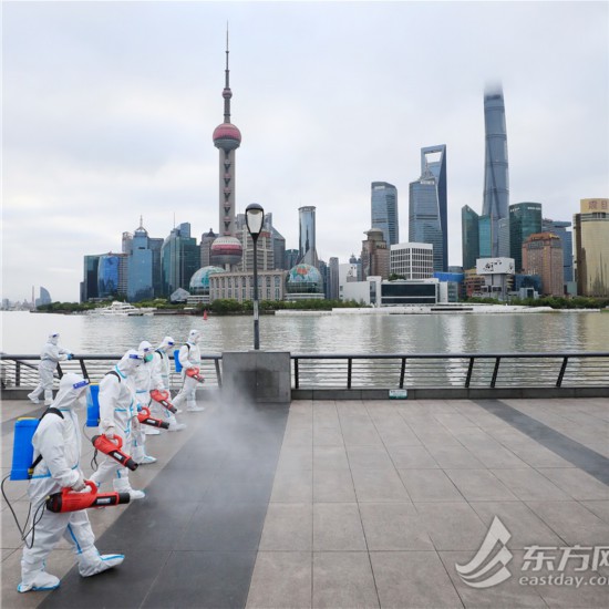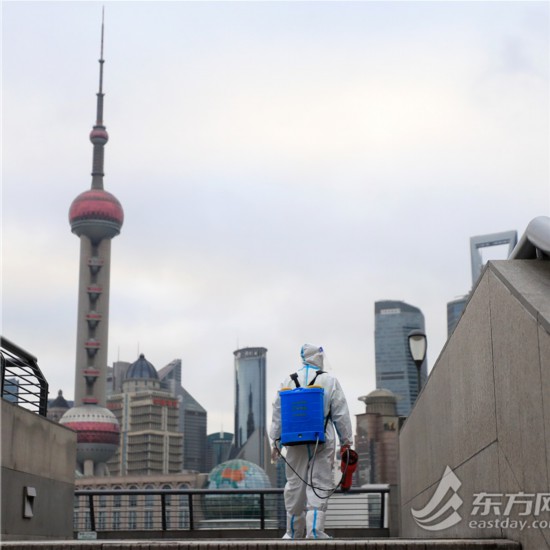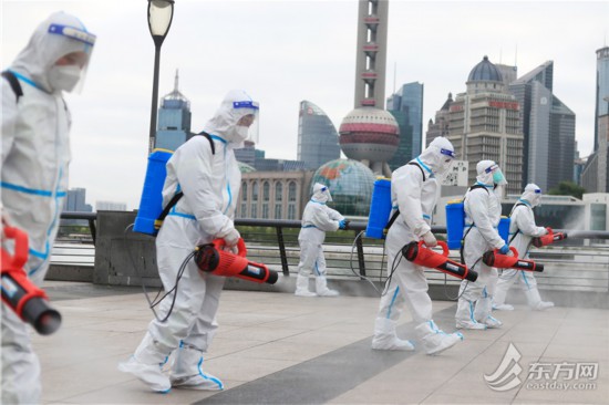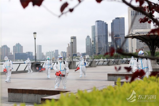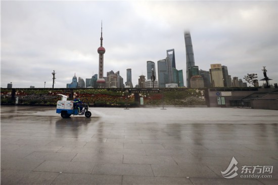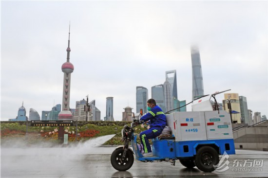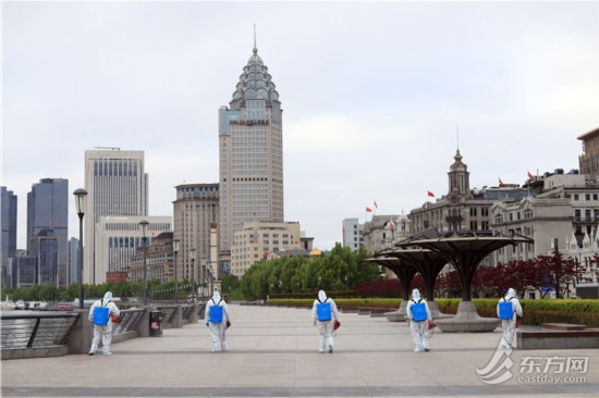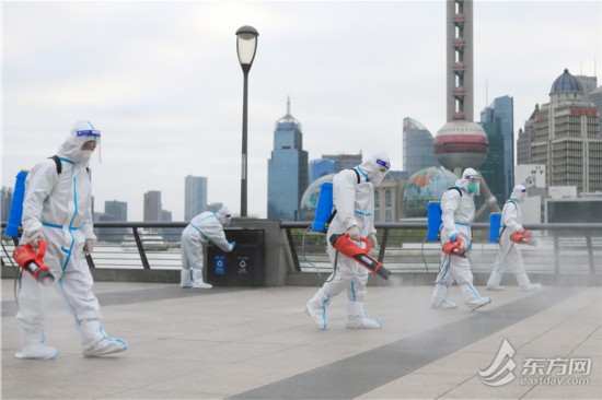 直擊清晨六點外灘環境清潔消殺 環衛工人克服減員困難連續“作戰”
