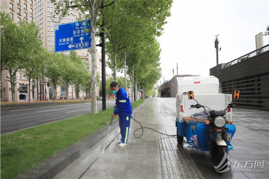 目前,上海已經在4月17日、19日已經開展了兩次道路大沖洗,在兩次專項行動中累計出動保潔人員13500人次,小型保潔設備1933輛次,道路機械化保潔設備1468輛次,消除死角盲區2405處,清除垃圾743.58噸。