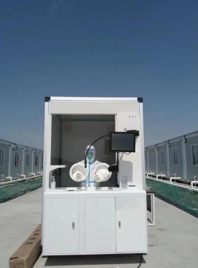 這里有“負壓空間”采樣員。氣溫日漸升高,醫護人員卻要每天密閉在厚重的防護服下,連續為日均1500名左右的患者采樣。潤達榕嘉知道這一情況后,即刻向方艙醫院提供了兩臺負壓采樣機,醫護人員從此可坐在清涼隔離艙中進行便捷的采樣操作。