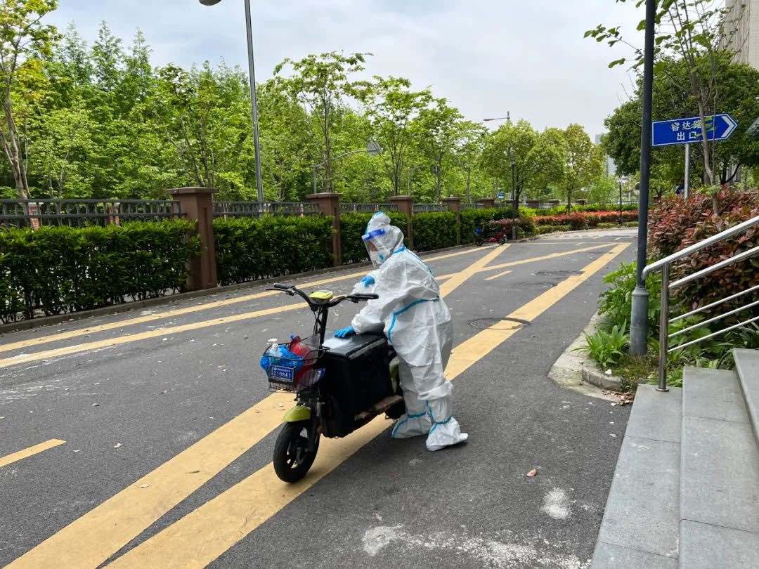 戎澤苑小區被劃為防范區。送餐員田磊騎車抵達居民樓下,按下門鈴后,不用報上大名,李阿姨就認出了她的聲音。開門后,田磊熟門熟路地上樓,將餐盒放到老人家門口!澳类徯N的飯我已經吃習慣了,以前我去現場堂食,現在只能送餐上門,不過好味道依舊!崩畎⒁瘫硎,“我今年已經80歲了,從小不會燒菜。這次疫情期間,孩子們都在國外,只能遠遠地為我著急,問我是否需要寄點菜來。我說不用,這里有街道每天送餐,一切都很好!