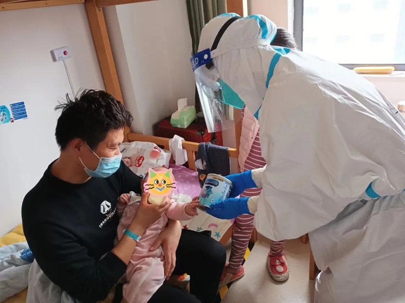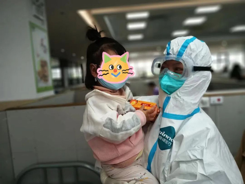 低齡患兒需要奶粉和尿不濕,有的家庭來方艙前帶的不多,“大白”們還專門籌集了一批母嬰用品給他們!皩純簛碚f,加強心理疏導和陪伴是很重要的,如果患兒是陽性,陪護人員是陰性的話,只要簽署承諾書,就可以進親子艙陪護,解決患兒分離焦慮!庇崃止鸾榻B道。
