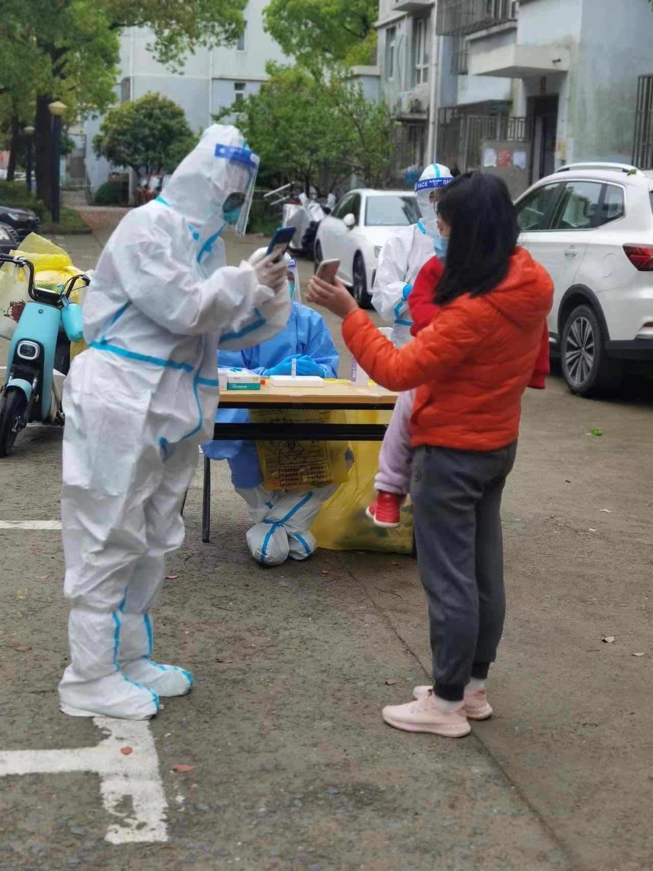 我們每天穿著防護服在小區協助做核酸、發抗原、快遞分揀、發放物資……有時熱得汗流浹背,有時被風吹得瑟瑟發抖,但我在人群中的吶喊聲是高昂的:“核酸碼找出來,手機屏幕調到最亮!