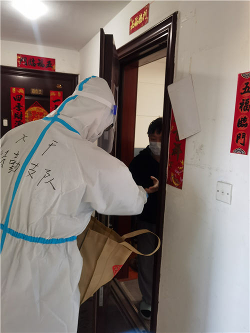 “黨員就是要用實際行動當先鋒、作表率!焙笄诒U峡瓶崎L盧俊挨家挨戶為居民發放防疫物資、新冠抗原檢測試劑,協助老人采樣自測,服務群眾抗原檢測800余次。