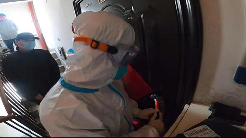 人民網上海4月26日電 (鄔迪)近日,靜安消防涉疫救助分隊處置了一起特殊的救助警情。某小區內,一名陽性確診老人疑似暈倒在家,敲門一直沒有反應,情況緊急,民警請求配合處置。