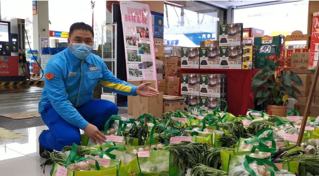一邊是站里充足的糧油、蔬菜,一邊是小區里片葉難搶的居民,蘇國明想到了平常加油站用來服務客戶的“線上朋友圈”。他一將加油站有新鮮蔬菜大禮包的消息發布出來,后臺便是一片詢問“能送嗎”。于是,他從第一個提到買菜難的員工所在小區開始嘗試,建立“綠川蔬菜配送群”,當天就接到19單。蘇國明按客戶訂單將蔬菜、糧油、蛋奶等送到小區門口,嘗試面向社區無接觸配送。沒想到,由于加油站的物資質量有保證、不漲價,一傳十,十傳百,配送群一下子擴張到2000多戶,54個小區。