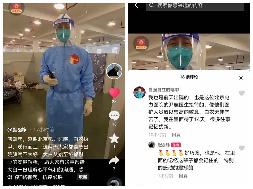 讓我印象深刻的是,4月18日晚,一位網友順利解除隔離醫學觀察,他在臨行前特地在抖音上發布出艙感言:“感謝北京電力醫院,你們白衣執甲,逆行而上。這兩天,大家都著急出院,脾氣不太好,‘大白’從始至終都耐心安慰解釋,愿大家給‘大白’一份理解,心平氣和地溝通!摺酚心,抗疫必勝!”他視頻中的“大白”就是我。作為醫務工作者,我覺得最幸福的事莫過于此。
