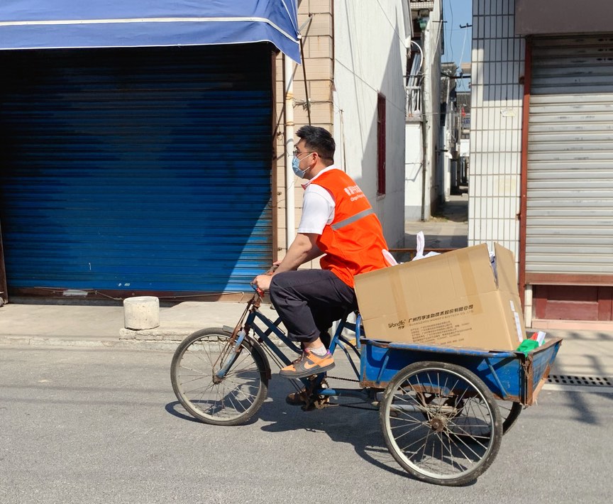 封控管理以后,解決村民日常需求,保障村民物資供應是最重要的事情之一。在泖甸村,每一位網格隊長都是物資“團長”,每位“團長”平均對接70-80戶村民,第一時間根據村民的需求,組織團購。為便于村民有事能第一時間找到人、找對人,網格劃分之后,每一位網格隊長和志愿者都把自己的手機號碼發放到自己的網格內的每一位村民手里,把來電鈴聲調成最大聲,開通24小時熱線服務電話,隨時接受村民的來電。村民張鳳英平日里是社區文化活動中心的一名文藝組工作人員,疫情防控開始,就有了一個新的身份——泖甸村第六網格長,每天穿梭于村組間,用責任守護轄區。哪里能買到物資?買什么樣的貨?怎么收付款等各類問題層出不窮,她每天不僅需要統計自己網格72戶村民的需求,還主動接過村民需求統計工作,和鎮里各個保供單位進行對接“搶購”。除此以外,泖甸村還利用村里原黨群服務站改造成了物資保障小超市,由村委會統一先購買大米、面粉、雞蛋等村民需求量高的物資,網格長再根據村民需求,“跑個腿”幫村民把物資買回家,村內原供銷社負責人經驗豐富,也主動就地化為志愿者,做好物資統計、結賬等工作!爸牢覀儼崴臀镔Y需要大車,村里的茭白種植戶主動把他們的卡車借給我們用!痹阢鞯榇妩h總支書記、村委會主任周新華感慨看來,除了網格隊長和志愿者的積極參與外,泖甸村的疫情防控工作,廣大村民也在盡自己最大的力量參與其中。