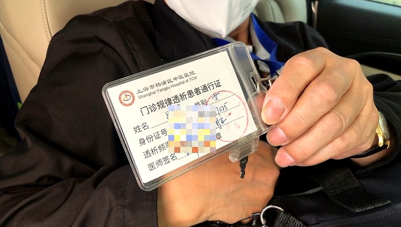 12點30分,在揚州路588弄海楊公寓門口,另一位血透患者也準時乘上了平涼路街道準備的其他就醫保障車,前往楊浦區中醫醫院進行血透。