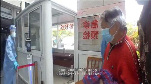 而同樣是4月19日上午,分局出入境辦民警在新四平公路奉賢浦東交界處卡口執勤,一輛白色面包車從浦東方向駛進卡口尋求民警幫助。車上一名75歲老阿婆突發疾病,腹部劇痛難忍,呼吸困難,阿婆的兒子聯系120救護車,但由于運力不足,救護車無法立刻到場救治,阿婆兒子想送老人至就近的奉城醫院救治。