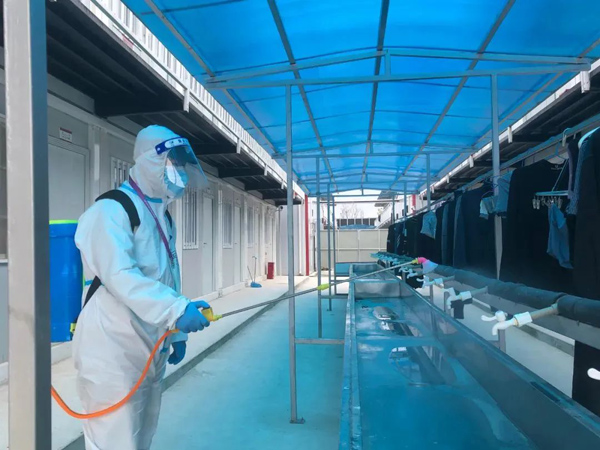 以花博會停車場臨時隔離點項目為例,項目周邊除花博大道林風公路路口外,均實行封閉管理,崇明區建設管理委組建道口管控專班,安排志愿者24小時駐守花博大道林風公路路口,對進出車輛進行嚴格審核。崇明區建設管理委還委托第三方專業公司對所有管理人員及施工人員實行每日核酸檢測,做到“逢陽必轉、日報日清”,并對陽性病例及時開展流行病學調查。對于密接人員按照“一人一室”單獨隔離。除日常消殺外,第三方專業消殺公司還對工地進行全面消殺,并組織醫護人員對環境進行采樣檢測。