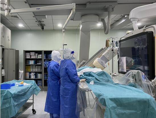 62歲的朱阿姨剛從方艙醫院解除隔離,突然出現反復胸悶,于是她來到同濟醫院急診求助。盡管無法提供核酸陰性證明,心血管內科來晏主任醫生和丁可可副主任醫師根據情況,為其實施了冠脈造影和左心室造影檢查,明確其血管狹窄程度還不需要支架治療,但朱阿姨存在一定的心肌病變,目前已轉入層流病房進行后續的治療。
