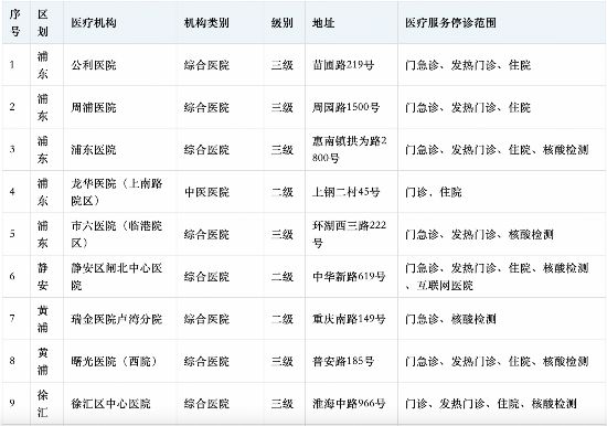 原標題:4月28日上海市、區主要醫療機構暫停醫療服務情況