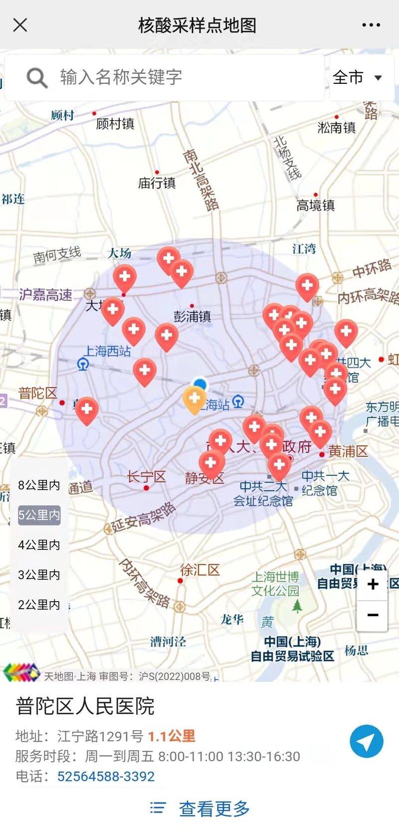 《上海市常態化核酸采樣點地圖》今晚上線,居民可搜周邊2到8公里范圍內點位
