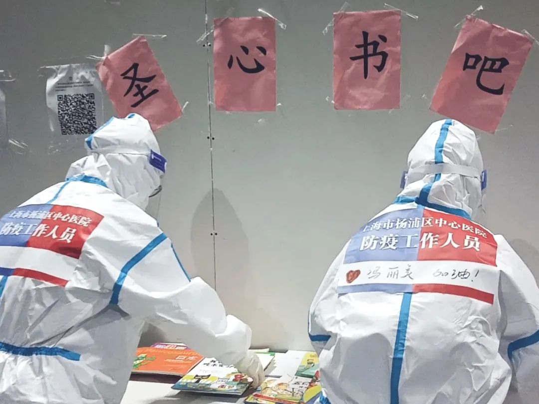 楊浦區中心醫院隔離收治點醫療隊員洪虹介紹,為了幫助孩子們緩解焦慮的情緒,豐富他們的日;顒,醫療隊就想到把原先在醫院兒科設置的書吧搬到這里來,盡力為孩子們創造一個溫馨的學習環境。