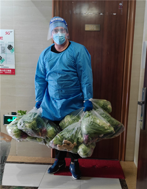 Chris的未婚妻是一位有著11年黨齡的共產黨員,在小區封控開始前,他們倆就已經報名參加了社區的志愿者。封控開始后,他們成為了樓棟專屬“快遞員”,幫助鄰居們解決最后100米的物資配送問題。疫情期間采購最多的就是生鮮和蔬菜,為了讓鄰居們拿到新鮮物資,Chris經常要深夜在小區門口等候,但他從沒為此抱怨過,即便面對晚點的快遞小哥,他也會用不太標準的漢語跟人家道一聲:“謝謝!”
