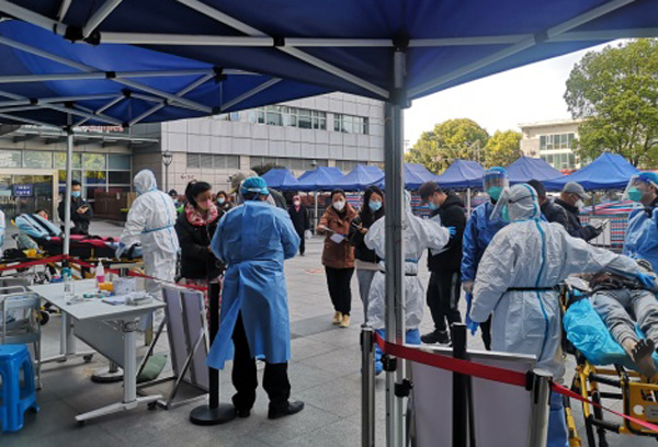 長海醫院急診科與發熱門診統一管理,自從3月7日在發熱門診發現第一例本輪疫情的陽性患者后,急診科的全體醫護人員、輔診人員、保安后勤保障人員,在確保急危重癥患者急救的同時,牢牢守住急診的抗疫前線。