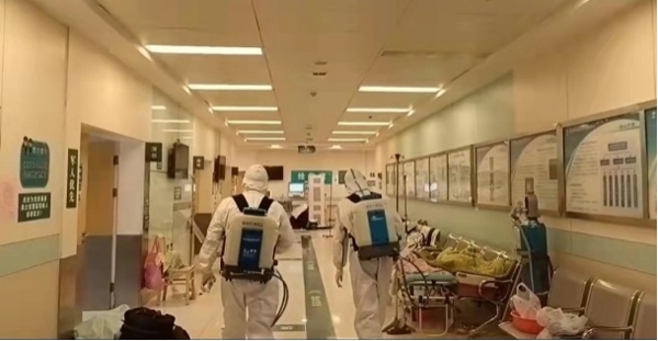 從疫情初始,急診就制定出每天三次環境消殺的規定,即便是留觀區的患者,也要挪移到空曠的地方,診室、走廊全部在無人的情況下進行空氣以及物表的消毒。