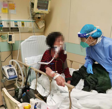 根據疫情防控政策,搶救室有幾位患者家屬無法陪護,搶救室的醫護團隊就承擔起了“患者家屬”的角色。