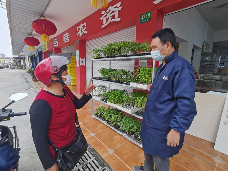 4、5月正是農忙時節,村民們自家的“小菜園”也到了換茬的時候。受疫情影響,之前大家自覺配合、避免外出,而隨著4月11日開始呂巷鎮的大部分區域轉為了防范區,哪里采買到菜苗成了很多村民關注的話題,種好自家的“小菜園”,不僅是村民的樂趣,更是村民自給自足的重要保障。為此,呂巷鎮快速響應,引導市場發揮主體作用,抓緊聯系了鎮上規模較大的農資超市,在落實各項疫情防控要求的前提下,第一時間幫助其納入了金山區第一批商業網點“白名單”商戶,多次上門對農資超市負責人和店員開展防疫指導,幫助尋找貨源,為其辦理通行證提供便利。