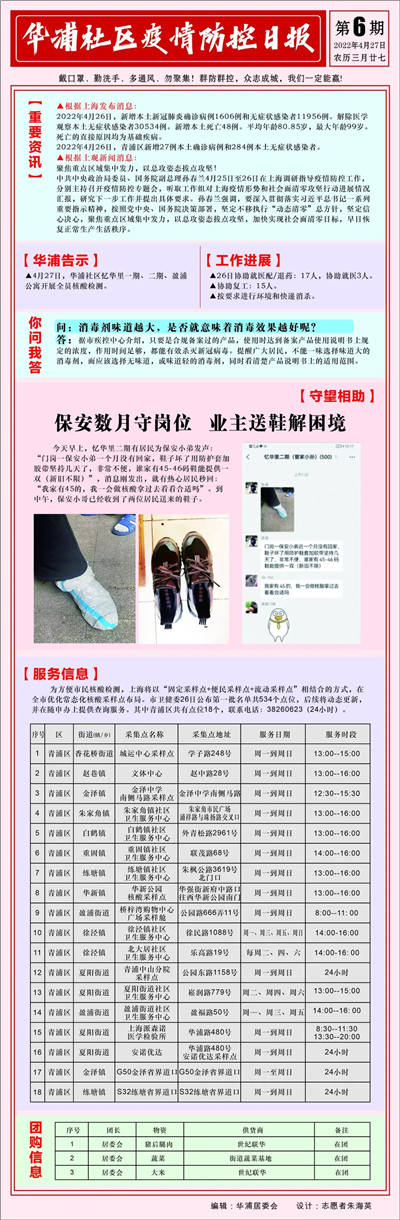 從最初的防疫政策通報,擴充到服務信息,再增加《你問我答》小欄目,從簡單的文字日報到海報版,《華浦社區疫情防控日報》還將根據市民需求,不斷豐富內容和形式,更好地服務社區居民。