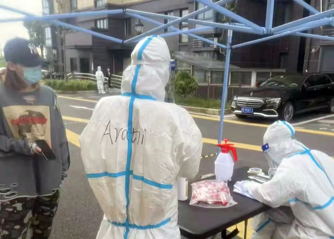 4月26日,羅家錦苑部分樓棟因抗原異常而封閉管控,近一半志愿者因封控不能參加志愿服務,人手一度緊缺。在新一輪的發動下,又涌現出一批年輕志愿者加入到隊伍中來,其中Arathi是加入羅家錦苑志愿者的第一位外國友人,她來自印度。