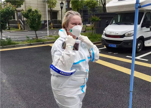 在Arathi的影響下,更多的外國友人想要加入到羅家錦苑的志愿者隊伍中,來自美國的Olena Nicholas女士,4月28日上午就順利完成了她的首次核酸志愿者工作。服務完成后,她開心地表示:“I am happy to be helpful and meet the neighbors and hard work . Language barrier, I need to study more so I could help more。(我很高興我能夠提供幫助并且見到我的鄰居們,他們都在努力工作,我在語言方面還有障礙,我需要更努力地學習才能夠做得更好)”。