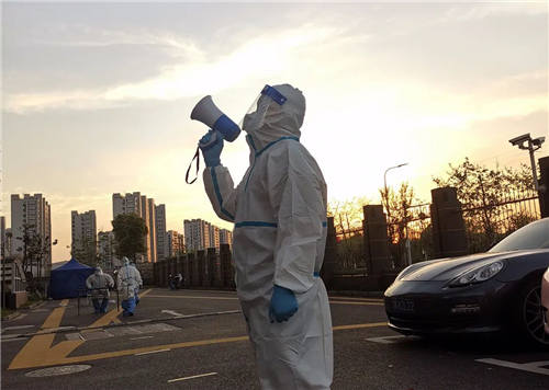 談起這些天的志愿服務工作,楊通江感慨良多:“一切服從組織安排,為居民做好服務責無旁貸”。4月13日那天大雨,早上6點多開始做核酸檢測,等結束回到辦公室已經是中午時分,聽到小區因為缺少垃圾桶,需要派人去環衛所拉回來。楊通江和同組的小伙伴二話不說,就冒雨一起前往環衛所拉了40多個垃圾桶并放置到三個小區;還沒來得及喝上一口熱水,又接到消息說政府免費發放的第三批物資到了,連忙冒雨去搬運物資并分發到每家每戶!斑@樣高強度的連軸轉,說心里話不累是假的”,楊通江坦誠地表示;想想那些奮戰在一線的白衣天使和抗疫同志們,當每次看到收到物資不停地說著謝謝的家人們,我覺得充滿了力量,這不就是我們共產黨人的初心嗎?