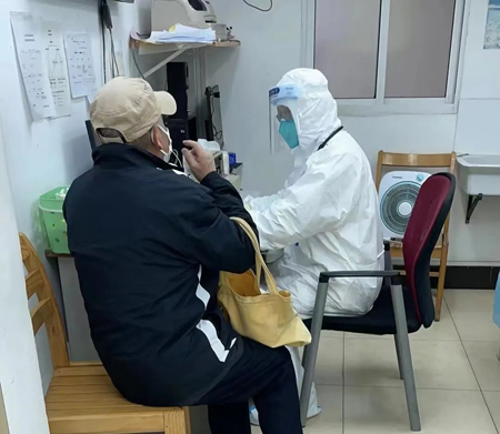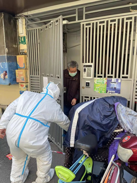 盡管張叔叔居住在封控樓里,但街道計生負責人董嵐二話不說,穿上防護服,在最熱的幾天接過了照護任務。