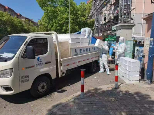 由于訂單需求量大,分揀包裝配送人手遠遠不夠。為了緩解訂單暴增,人手不夠的情況,11名志愿者主動從寶山轉戰嘉定,投入到防疫消毒、活魚分揀、產品包裝、訂單配送的工作中。連日來,志愿者們與工作人員始終處于日夜堅守的狀態,接單、配貨、裝車、消殺、配送......每天都要忙到晚上十一二點,在短暫休息四個小時后,又再次投入保供工作。