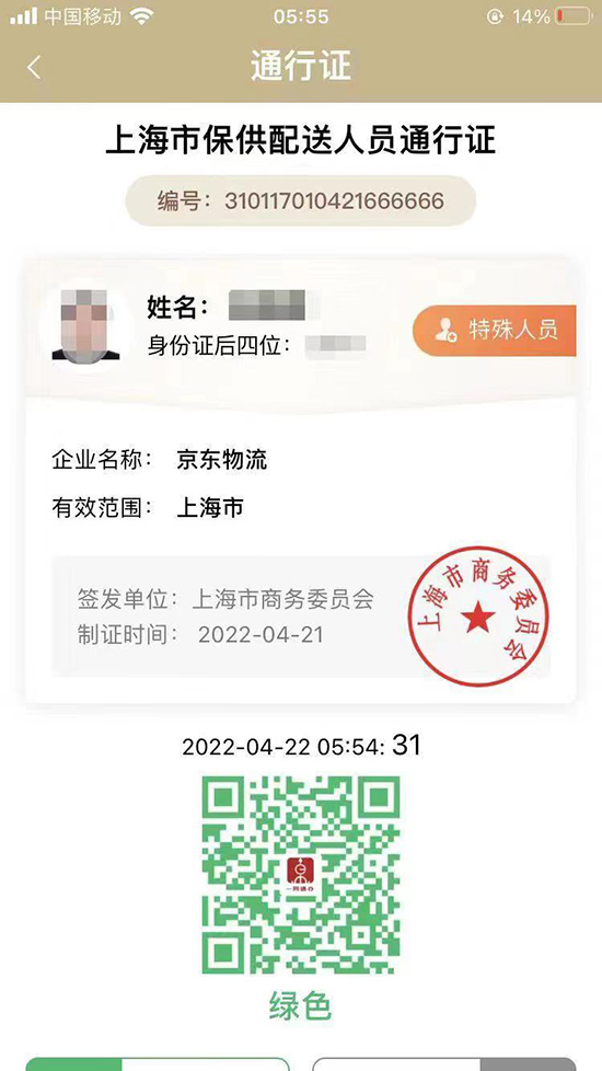 據了解,為做好快遞外賣騎手的防疫管理,本市啟用了配送寄遞人員“電子通行證”,只有持有符合要求的核酸、抗原檢測陰性證明和“健康碼”綠碼的從業人員才能生成“電子通行證”。配送寄遞人員開展工作時,應當持有有效的“電子通行證”并主動向服務對象出示。