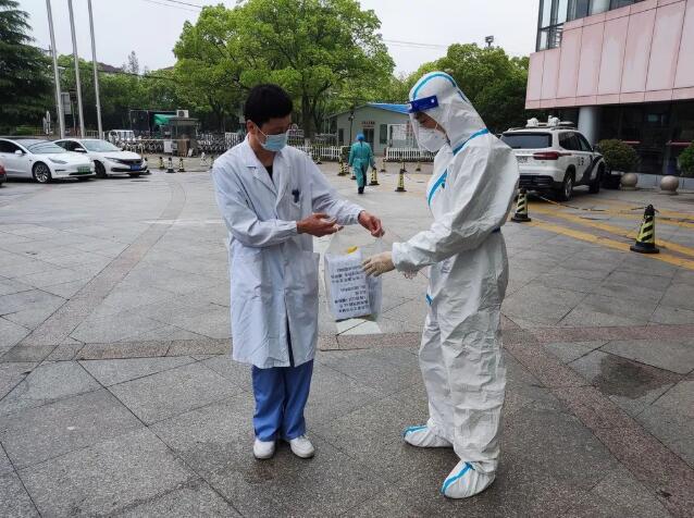 4月26日上午8點半,菊園派出所民警孫晨熠來到嘉定區中心醫院,從接待辦主任潘利民手中接過包裹,隨后驅車送往嘉定區公安分局葛隆檢查站!奥氊熕,舉手之勞!睂O晨熠說,這段時間,他和同事時刻處于待命狀態,也多次幫助市民運送藥物,“這是我們工作中的常態,我也覺得很有意義!