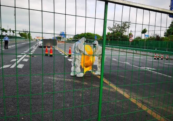 下午4點,太倉市城廂鎮梅園社區黨委書記、主任凌燕秋與葛隆檢查站站長曹思恒在兩地交界處碰面!笆O碌木徒唤o你們了!薄爸x謝!”二人在不接觸的情況下,完成交接并消殺后,這場接力跑終于完成了“第一棒”。