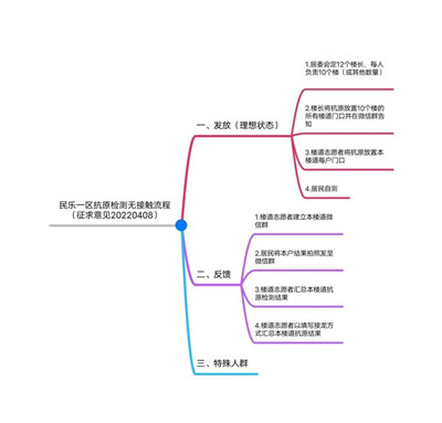 民樂社區共有120個樓道,近1600戶約4000名居民。按照以往,小區都是志愿者爬樓上門發放抗原,再去回收試劑結果。如此一來,既增添居委會核查時間,又耗費志愿者體力,增加了他們交叉感染的風險。張凡濤思考如何運用信息化手段,實現抗原無接觸的反饋和統計,他率先提出了一個“無接觸抗原反饋流程”建議,通過長時間的溝通和協調,建立小區全覆蓋的“120位樓道長群”。