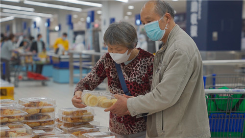 “心情太好了!拿到通行證,今天特意來超市里采購!痹诩覙犯䥺T店內,李女士推著滿滿當當的購物車告訴記者,她家人多,因此買了許多商品。記者看到,超市內零食、飲料、熟食、日用品、米面油……貨架上各類商品擺放整齊,種類齊全,生產日期也都很新鮮!氨緛磉以為人會很多,沒想到只排了十多分鐘的隊伍,超市里面人流平穩,秩序十分良好!