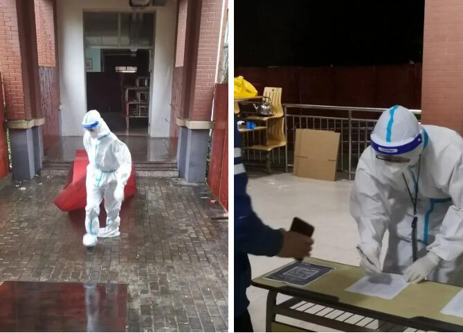 “4月6日一早,我們小組5人入駐中學隔離點,當天便開始陸續接收隔離人員;9日我們轉場小學隔離點,最多的時候有300多人同時暫住轉運點內!备綦x轉運點工作組組員朱龍飛說,“轉運人員大多數都是深夜才到,有的時候半夜12點到了第一批,凌晨1點多又來了一批,等人員全部安排妥當常常要凌晨3、4點了!