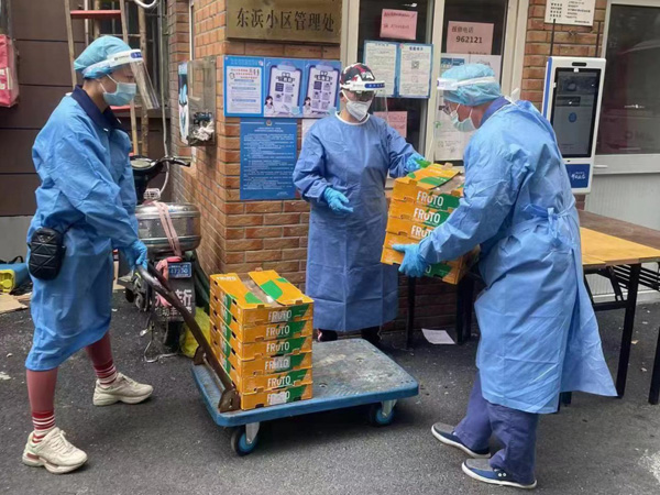 東浜小區屬于老公房社區,有許多獨居老人。有一次,張燕在送藥的時候留意到,許多老人不會用手機團購,家中備有的生活物資也不多了。于是,她在微信群呼吁,“各位鄰居,樓里有老人家中的大米不太夠了,誰家有多的能否提供給他們?”很快得到了許多居民們的響應,有熱心的鄰居送出了掛面、速凍水餃、衛生用品等。