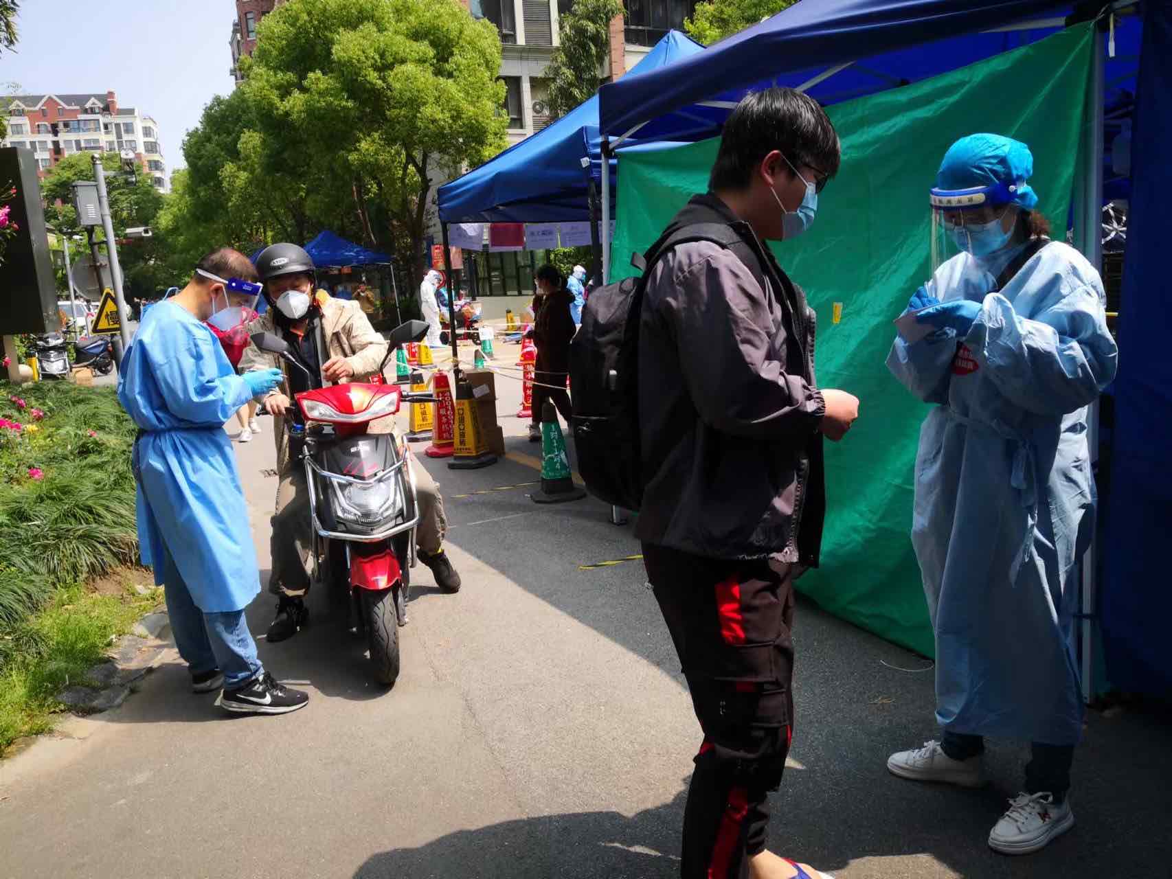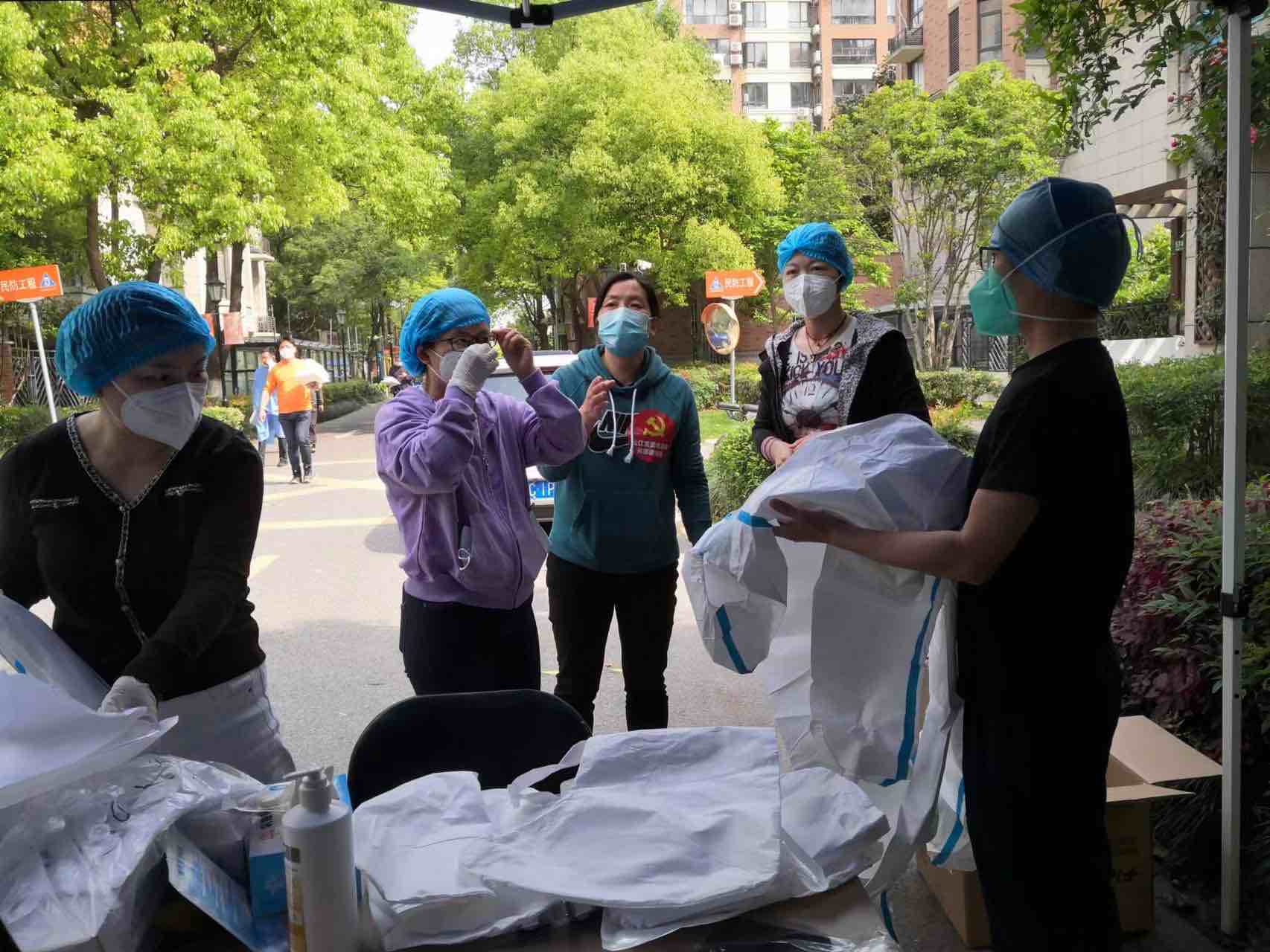 為了讓核酸采樣點常態化,社區招募了16位核酸采樣志愿者,經過培訓,5月1日上崗!吧虾_@么大,不能總是依靠外地檢測人員,他們來回太辛苦。上海人要靠自己,有擔當!敝驹刚哒f。