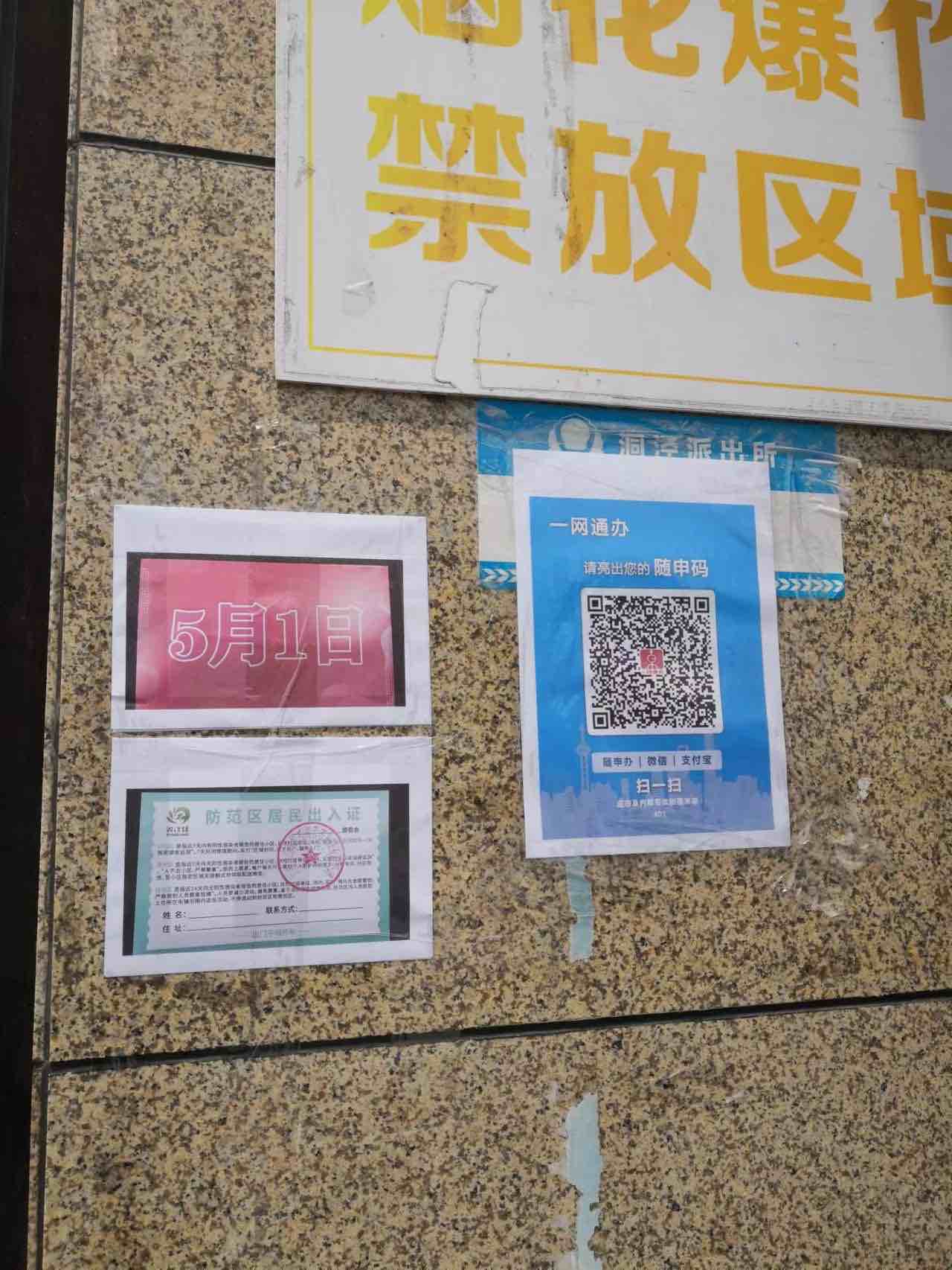 人流不斷。一個年輕母親推著孩子出去,出示了出入證,志愿者在5月1日上劃了一道桿,順便提醒:“不能走遠哦!”她笑:“我只是帶娃到河邊走走”。還有的居民拉著寵物狗出去遛彎兒。