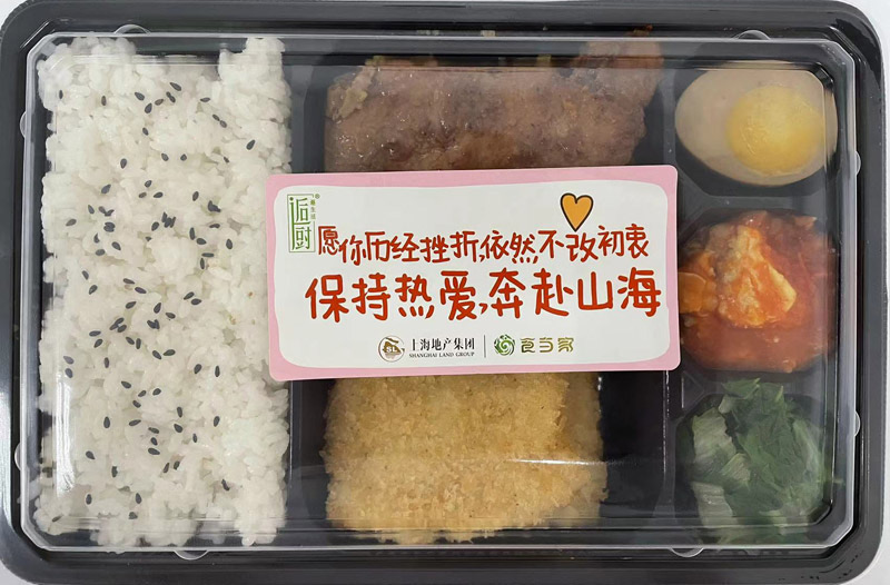 “冷鏈盒飯,就像平時在全家超市買的那種,冷藏保存,現場加熱!毙潞朕r業團餐供應鏈事業部總經理朱晏偉解釋,因具備食品安全生產等級高、便于備貨等優勢,在方艙附近現場熱制,確保拿到手中還熱著。