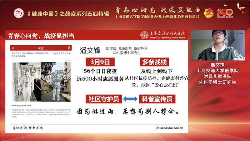 潘文鋒講述戰疫故事。交大醫學院供圖