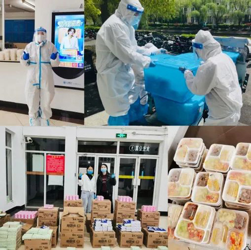 校園靜態管理期間,學生黨員、退伍大學生、樓層長與校領導、教授、輔導員、行政管理人員、后勤保障人員等共同組成了餐食物資的“接力隊伍”。一雙雙把握生命脈搏的手,在無聲的揮汗如雨中,接續傳遞校園脈搏。
