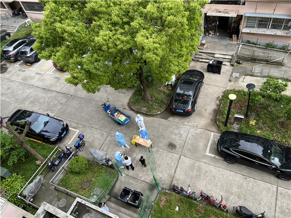 在樓上看鄰居們核酸檢測